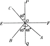 例1、如图所示是一束光斜射向玻璃和空气的交界面上,发生光的反射和光的折射现象的光路图,则_______是入射光线,______是折射光线,______是界面,入射角大小是_______,反射角大小是_______,折射角大小是_______,光是从______射入_______中的。