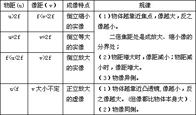 (1)放大镜:放大镜是利用凸透镜成正立、放大虚像的原理来工作的。物体必须置于凸透镜的焦点之内,即u<f,才能被放大为正立的虚像。