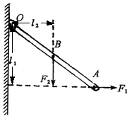 OBA是一绕O点转动的杠杆,此时受到绳AC的拉力F和重物G施加在B点的拉力而平衡。由杠杆平衡条件即可求出力的大小或力臂的长短,要注意力臂是指支点到力的作用线的距离。