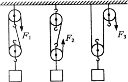 例8、(2002年黄石市中考试题)在利用图中的三个滑轮组分别匀速提升同一重物时,若三个滑轮组中动滑轮的重量相同且摩擦不计,则F1、F2和F3的关系是(