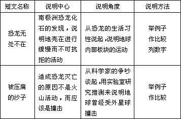 这篇短文,初看题目不知所云,什么叫“被压扁的沙子”?沙子在什么情况下会被压扁呢?“被压扁的沙子”能说明什么问题?并且,在开头一段,作者同样提出了一个与题目似乎毫不相干的问题:“在过去的9年里,科学家们一直对6500万年前恐龙灭绝的一个新观点争论不休,这个问题最终也许会得到解决。”读完这段文字,感到仿佛是在讨论前一篇未了的话题。的确,与前文的论证方法异曲同工,作者正是通过“被压扁的沙子”来探讨恐龙的死因——再一次证明“不同科学领域之间是紧密相连的。在一个科学领域的新发现肯定会对其他领域产生影响。”