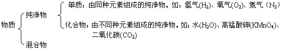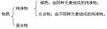 氧化物:由两种元素组成,其中一种元素是氧元素的化合物。如:水(H2O)、二氧化碳(CO2) 注意:纯净物分为单质和化合物,氧化物是化合物中的一部分。 练习:写出一些物质的化学式,请学生判断物质类别:   (1)氧化镁(MgO):(纯净物、化合物、氧化物)   (2)水(H2O) :(纯净物、化合物、氧化物)   (3)冰水混合物:(纯净物、化合物、氧化物)   (4)二氧化碳(CO2) :(纯净物、化合物、氧化物)   (5)高锰酸钾(KMnO4) :(纯净物、化合物)   (6)氧气(O2)和臭氧(O3)的混合物:(混合物) 【总结】 1、水的组成   (1)电解水的实验   (2)水的组成:水是由氢元素和氧元素组成的。       文字表达式为:水  氢气 + 氧气             (H2O)    (H2)   (O2) 2、单质、化合物、氧化物        - 返回 - |