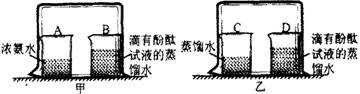 (1)实验1:在盛有少量蒸馏水的小烧杯中滴入2~3滴酚酞试液,再向其中滴加浓氨水。由实验1得出的结论是_______________________________________;
