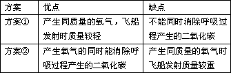 从减轻飞船发射重量和消除呼吸过程产生的二氧化碳的角度请你评价这两个方案最主要的优缺点(各写一点)