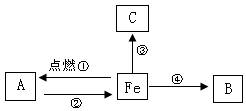 6、构建知识网络是一种重要的学习方法。下图是关于铁化学性质的知识网络(“→”表示一种物质转化为另一种物质),其中B是密度最小的气体,C为红色固体单质。请回答下列问题: