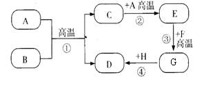7、A~H都是初中化学中常见的物质,已知B为黑色固体,D为红色固体单质,F为红色同体,它们的转化关系如图所示。请回答: