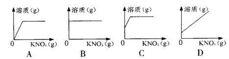 4、向一瓶接近饱和的KNO3溶液中,逐渐加入KNO3,晶体,下列图象符合溶液中溶质的质量变化规律的是( )
