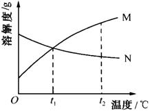 A中,t1℃时,M、N两物质饱和溶液溶质质量分数相等;B中,由t1℃升温到t2℃时,N物质若析出,溶液溶质质量分数会减小;C中,温度大于t1℃时,M物质的溶解度大于N物质的溶解度。