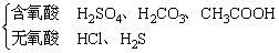 二元酸:如:H2SO4、H2CO3、H2SO3