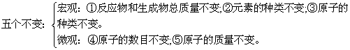 3、质量守恒定律的理解:可总结为五个不变、两个一定改变、一个可能改变。