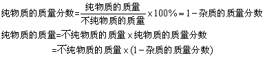化学方程式表示的是纯物质之间发生化学变化时的化学计算关系。根据化学方程式计算时,代入的量必须是纯物质的量。因此,当反应物含有杂质时,必须先把含杂质的物质的质量换算成纯物质的质量。计算公式: