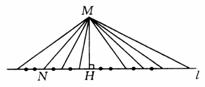 如图,点M为直线l外一点,在l上任取一点N,连结MN,则事件A:MN⊥l的概率是多少?