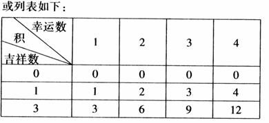 由图表知,所有等可能的结果有12种,其中积为0的有4种,所以积为0的概率为 .