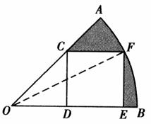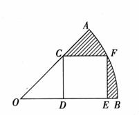 2.(2009河南)如图,在半径为 ,圆心角等于45°的扇形AOB内部作一个正方形CDEF,使点C在OA上,点D、E在OB上,点F在 上,则阴影部分的面积为(结果保留π)_________.