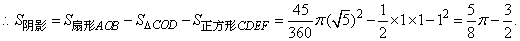又∵四边形CDEF是正方形,∴CD=EF=DE,设正方形的边长为x,则OE=2x,EF=x,在Rt△OEF中,OE2+EF2=OF2,(2x)2+x2= ,则x=1,