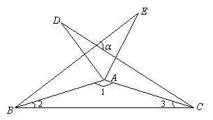3、如图△ABE和△ADC是△ABC分别沿着AB、AC翻折180°形成的.若∠1︰∠2︰∠3=28︰5︰3,则∠α的度数为_________.