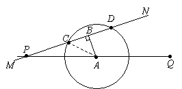 以点A为圆心,以100米为半径作⊙A交MN于C、D两点.