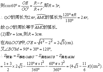 (2)若⊙O′的半径为1cm,求图中阴影部分的面积.