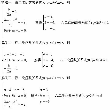 解法四:因为抛物线顶点为(1,-8),所以设函数关系式为y=a(x-1)2-8.