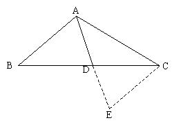 倍长中线AD至E,连结CE。易证AB∥CE。