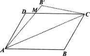 12、 如图,将平行四边形ABCD沿AC折叠,点B落在B'处,AB'交DC于点M.求证:折叠后重合的部分(即△MAC)是等腰三角形。