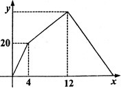 17、(满分9')有一个附有进出水管的容器,每单位时间内进出的水量都是一定的,且每单位时间内进水量是出水量的 倍。设从某时刻开始的4分钟内只进水,不出水,在随后的8分钟内既进水又出水,最后,只出水,不进水,直到容器里的水全部放完。得到时间x(分)与水量y(升)之间的关系如图所示。试根据图像回答: