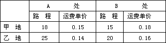 20、(满分10')在建设中的湖滨绿色长廊有A,B两处,须铺上马蹄金草皮.已知甲,乙两地分别有马蹄金草皮4000平方米和2000平方米出售,且销售价一样.A,B两处所需草皮面积分别是下图草坪面积的6倍和4倍,甲,乙两地到A,B两地的路程和运费单价如下表.(表中运费单价表示每平方米草皮运送1千米所需人民币,单位:元;路程单位:千米;π取3)