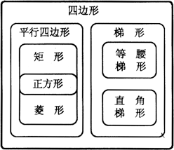 4、平行四边形、菱形、矩形、等腰梯形、直解梯形都是特殊四边形,它们之间的包含关系如图.