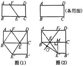 ②直线E′E经过原矩形的一个顶点的情形下,连结BE′,直线BE′与EF是否平行?你若认为平行,请给予证明;你若认为不平行,试探究当a与b有何种数量关系时,它们就垂直?