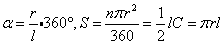 圆锥的侧面展开图是扇形,这个扇形的弧长等于圆锥底面圆周长C,半径等于圆锥的母线l,若圆锥的底面半径为r,这个扇形的圆心角为 ,则 ;