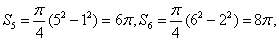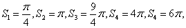 (2)先由图形可知,每个扇形的圆心角都是90°,第n个扇形的半径为n,其次从第5个扇形开始出现扇环, …,可知第n个扇环的面积是第n个扇形面积与第(n-4)个扇形面积之差,所以 ,易求得S8.