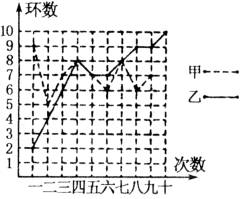 21、甲、乙两人在相同的条件下各射靶10次,每次射靶的成绩如图所示: