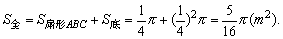 如图,有一个直径为的圆形纸片,要从中剪出一个最大的圆心角为90°的扇形ABC. (1)求被剪掉的阴影部分的面积. (2)用所留的扇形铁皮围成一个圆锥,该圆锥的底面圆的半径是多少? (3)求圆锥的全面积. 解析: 阴影部分面积是⊙O的面积减去一个圆心角为90°的扇形面积,所以先要求出扇形面积,再解决其它的问题. 解:(1)连结BC,∵∠BAC=90°,又∵BC=. 且AB=AC,∴ ∴ = (2)设所围成的圆锥底面半径为rm,∴ 即,∴ (3)