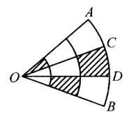 5、如图,在同心圆中,两圆半径分别为2、1,∠AOB=120°,则阴影部分的面积为( )