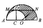 15、如图所示,在两个半圆中,大圆的弦MN与小圆相切,D为切点,且MN∥AB,MN=a,ON、CD分别为两圆的半径,求阴影部分的面积。