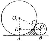 16、如图,一台机器的大轮⊙O1和小轮⊙O2外切于点C,且两轮都和板面相切于A、B,若⊙O1的半径为3cm,⊙O2的半径为1cm,求阴影部分的面积.