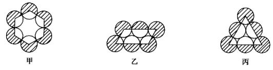 8.如图所示,有六个等圆按图甲、乙、丙三种形状摆放,使相邻两圆互相外切,且它们的连心线分别构成正六边形、平行四边形和正三角形,将连心线外侧的6个扇形(阴影部分)的面积之和依次记为S1、S2、S3,则S1,S2,S3之间的关系是_______.