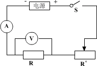 11、要组成如图所示的电路,用来测定一待测电阻R的阻值(估计阻值范围在30Ω到50Ω之间)。给你下列器材:电流表一个(量程0.6A、3A),电压表一个(量程3V、15V),干电池一节,蓄电池组一个(电压12V),滑动变阻器R′和开关S各一个,导线若干,组成电路时,电源应选________________;电压表量程应选________________;电流表量程应选________________。实验过程中,要增加R两端的电压,R′的滑片应向___________移动。