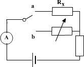 13、如图所示的电路可以测定未知电阻Rx的阻值,已知电源电压恒定,当单刀双掷开关S接a时,电流表的示数为0.3A;当S接b时,调节电阻箱R的旋盘,直到电流表示数又为0.3A为止,读取电阻箱的电阻值为60Ω,由此可知,Rx的阻值为___________Ω。