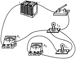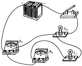 图中的连接方法,电流在经过电流表A1后,可不经过电流表A2和电灯L1而到达L2的左接线柱,从而造成灯L1和电流表A2被短路.同时,电流表A2的正负接线柱接反了.根据要求可判断L1和L2要并联,可用A1测干路电流,A2测L1中的电流,又要求只改动一根导线,可把A2的“0.6”接线柱与A1之间的导线移动到A2与L2的右接线柱接之间.