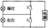 S1闭合时,绿灯被短路;S2闭合时,红灯被短路;S1、S2都断开时,两个灯都亮.题中要求绿灯亮,红灯不亮.故可知S1断开,S2闭合.选A.