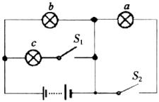 此电路是—个典型的开关控制电路.当开关的工作状态不同时,电路的连接方式不同.开关S1、S2都闭合时,灯a短路,灯b与灯C并联;开关S1、S2都断开的,只有灯b工作;灯c、灯a均开路.故题中C、D正确.