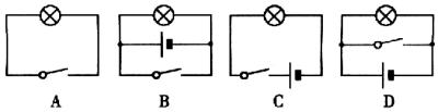 一个正确的电路必须要有电源、用电器、开关以及导线.它们在电路中的作用不同.开关——控制电路的通断;电源是提供电能的装置,用电器是利用电流来工作的仪器,导线起导通作用.四个元件缺一就不是一个完整的电路.A图中无电源,B图中的开关闭合时,电源就短路,D图中开关闭合时,电源也短路,只有C图是正确的.