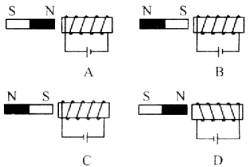 8、如图所示,条形磁铁与通电螺线管互相吸引的是( )