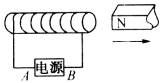 16、如图所示,螺线管通电后产生的磁场与右边的磁体相排斥,通电螺线管远离磁体端为________极,电源A端为________极.