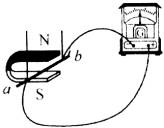 17、如图所示,将一根金属棒ab与灵敏电流计组成闭合电路,让金属棒在磁场中做________运动时,灵敏电流计指针发生偏转,说明有感应电流产生.如果让金属棒反方向运动时,发现灵敏电流计指针的偏转方向与刚才________,说明感应电流方向与金属棒的运动方向________ (填“有关”或“无关”).