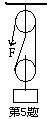 5. 用如图所示的滑轮组把重240N的货物升高4m。若拉力大小为150N,则拉力做的总功为___________J,有用功为___________J,额外功为___________J,机械效率为___________。