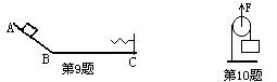 9. 如图所示的光滑轨道ABC,弹簧固定在水平轨道的末端,物体从A点静止开始下滑,在弹簧被压缩的过程中,___________能转化为___________能。