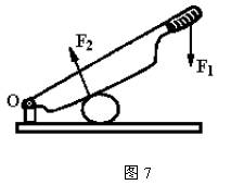 27、作出下图7的闸刀使用中的两个力臂,并标明L1和L2。