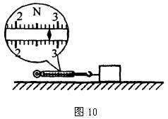 (1)在水平桌面上,用弹簧测力计水平向左拉动木块,使其作匀速直线运动,弹簧测力计示数如图10所示。根据____________知识可知,木块所受的滑动摩擦力为____________N;